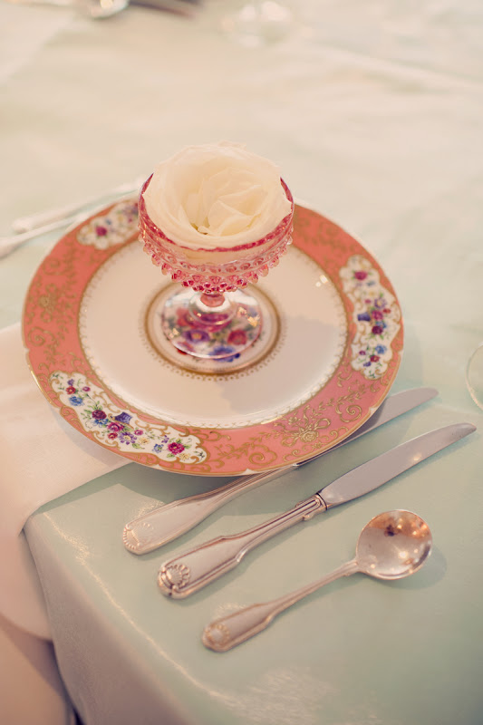 | I wanted to take these vintage inspired, pink glass dessert coupes home with me! |